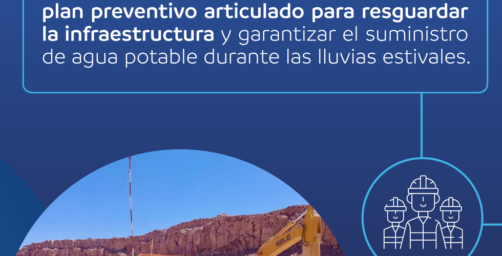 De cara a las lluvias estivales, fenómeno climatológico que se produce entre los meses de noviembre y marzo en la región de Antofagasta, la ha implementado un plan preventivo integral con el objetivo de proteger su infraestructura crítica y asegurar la continuidad del suministro de agua potable en las localidades donde están presentes.
