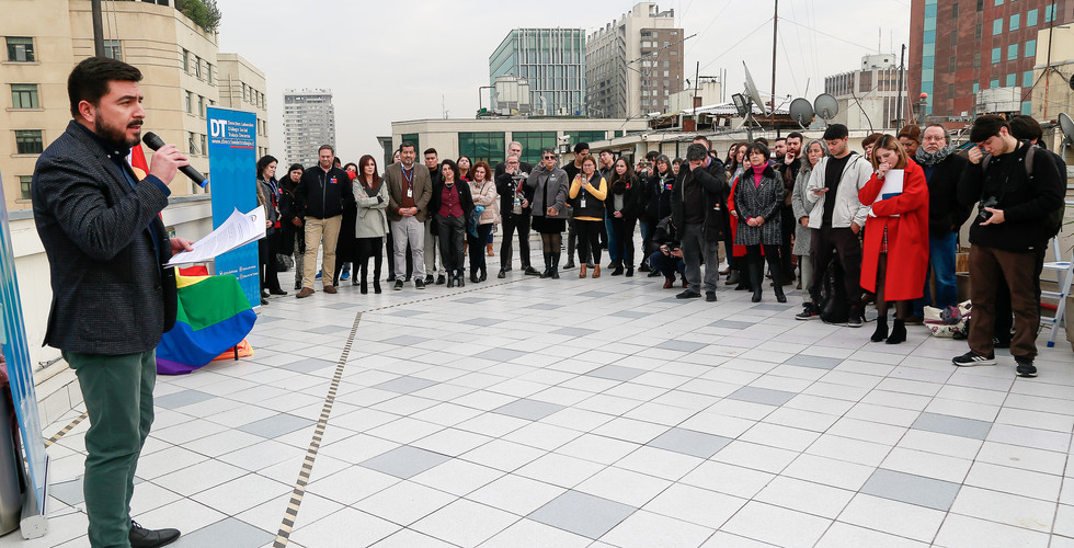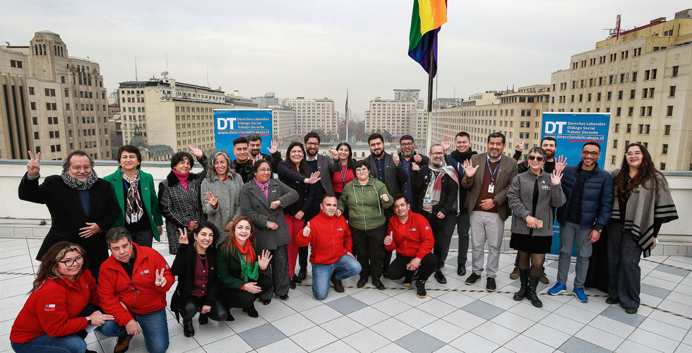 "que fiscalizará derechos de trabajadores y trabajadoras de las disidencias sexuales y de género". Compromiso institucional fue asumido en actividad de izamiento de la bandera LGBTIQ+ en la azotea del edificio de la dirección nacional.
