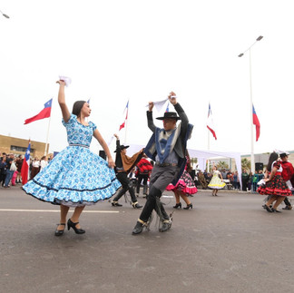Por su parte, diversas delegaciones de estudiantes con sus vestimentas típicas, encabezaron el tradicional pie de cueca, invitando a las autoridades a participar del baile.