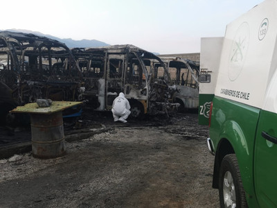 Nueve microbuses de la línea 111 del TransAntofagasta resultaron afectadas en incendio en garita