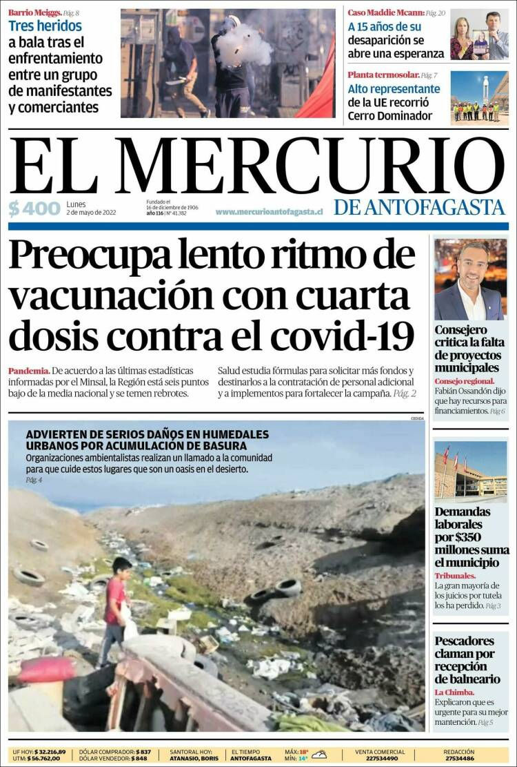 PORTADAS DE LA PRENSA ESCRITA LOCAL PARA HOY LUNES 02 DE MAYO Radio Antofagasta Online2 may 20220 Min. de lectura
