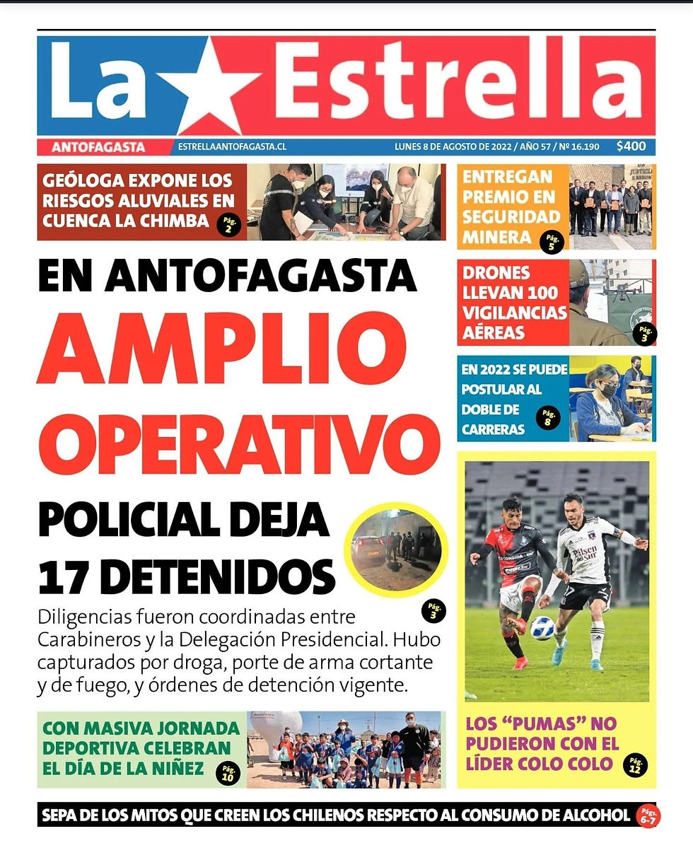 PORTADAS DE LA PRENSA ESCRITA LOCAL PARA HOY LUNES 08 DE AGOSTORadio Antofagasta Online8 ago 20220 Min. de lectura
