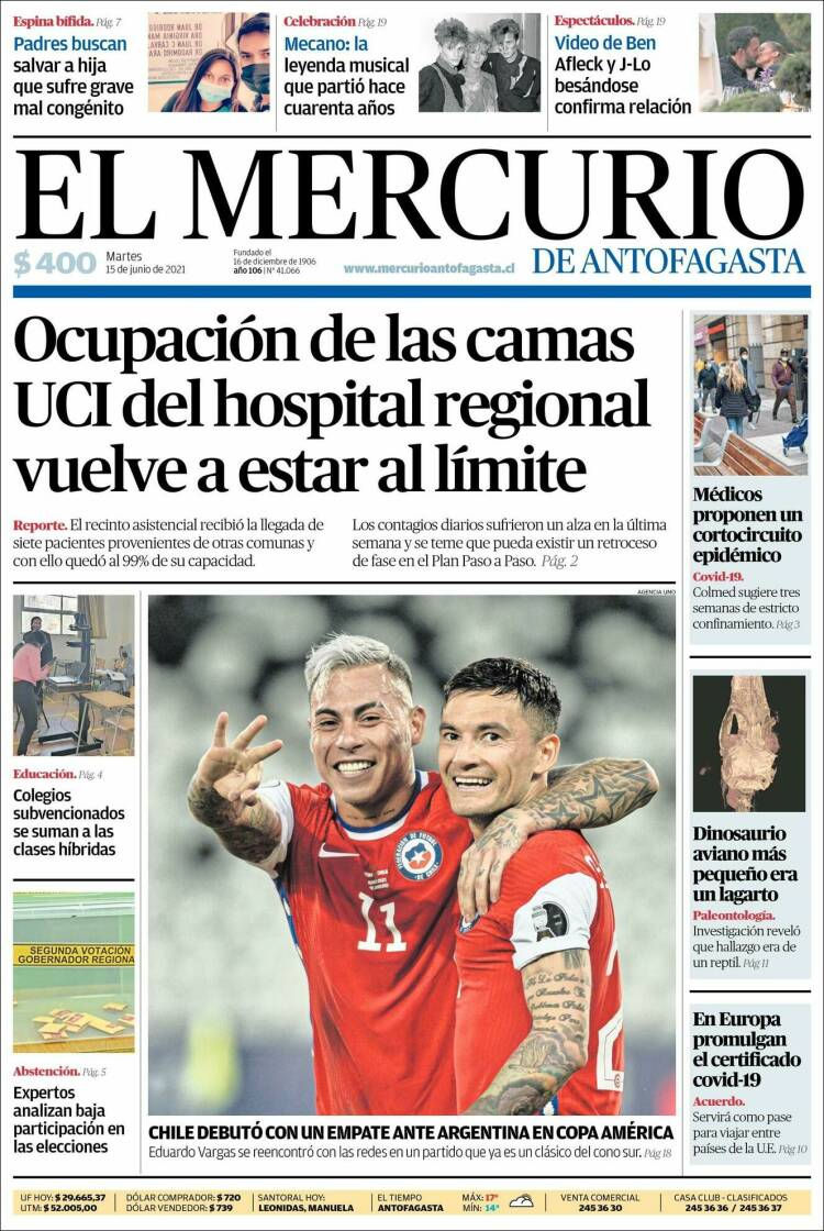 TITULARES DE LA PRENSA LOCAL ESCRITA PARA HOY MARTES 15 DE JUNIORadio Antofagasta Online15 jun 20210 Min. de lectura