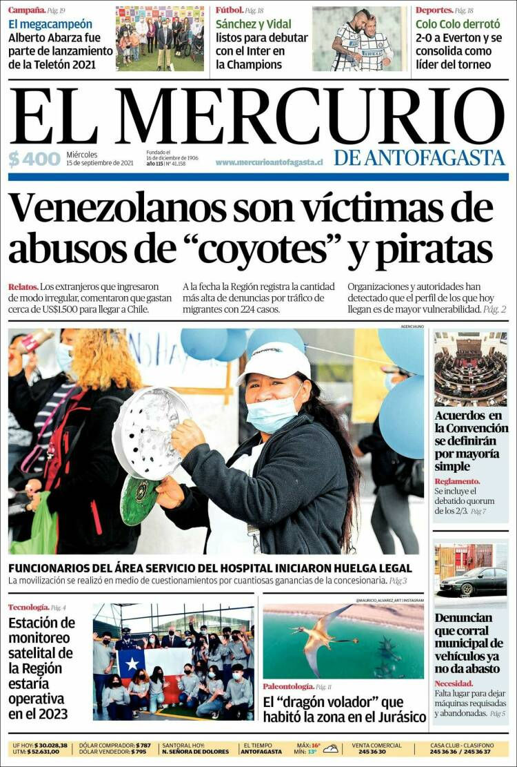 TITULARES DE LA PRENSA LOCAL ESCRITA PARA HOY MIÉRCOLES 15 DE SEPTIEMBRERadio Antofagasta Online15 sept 20210 Min. de lectura