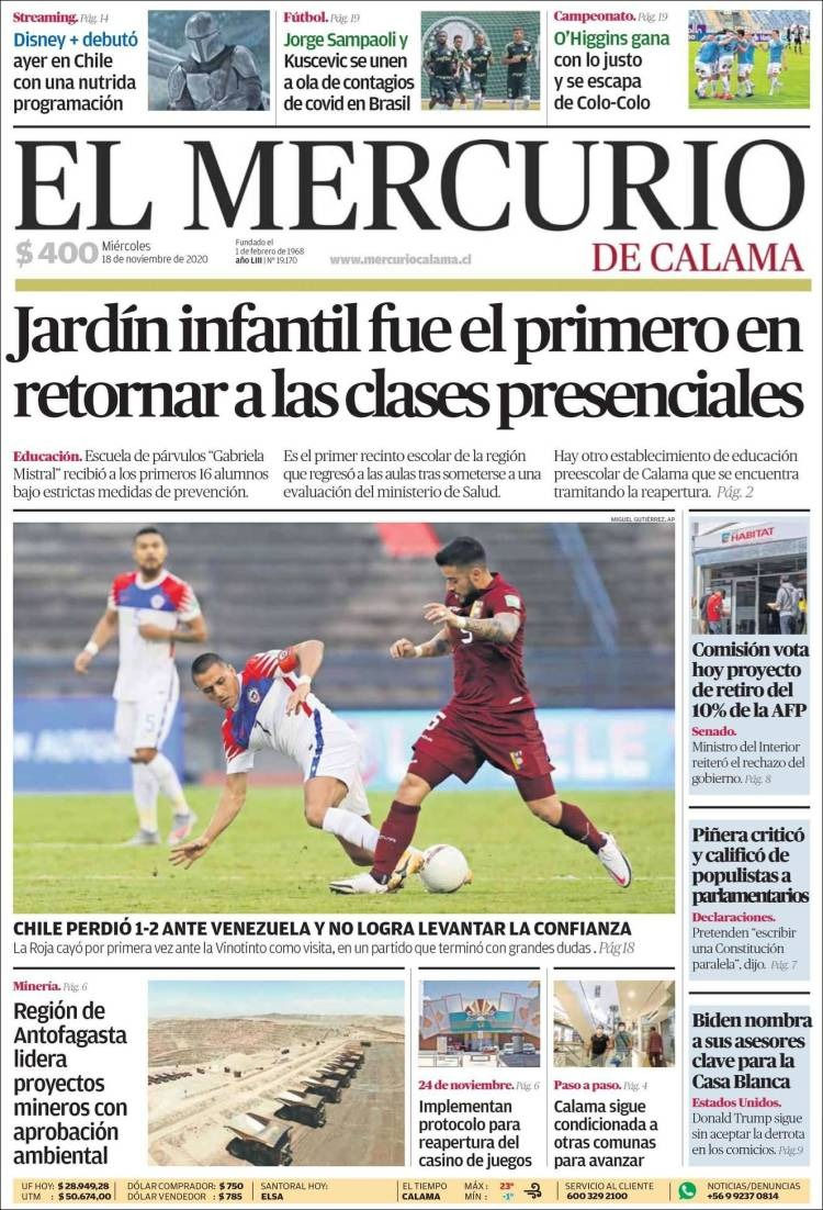 TITULARES DE LA PRENSA LOCAL PARA HOY MIÉRCOLES 18 DE NOVIEMBRERadio Antofagasta Online18 nov 20200 Min. de lectura